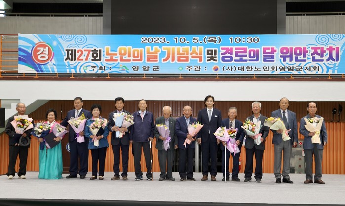 [전남=프레스뉴스] 강래성 기자= 영암군(군수 우승희)이 5일 영암군실내체육관에서 대한노인회 영암군지회 주관으로 '제27회 노인의날 기념식'을 개최했다.