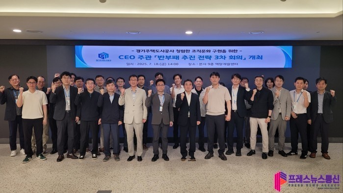 [프레스뉴스] 류현주 기자= 경기주택도시공사(GH)는 18일 이종선 사장 직무대행 주재로 ‘2025년 제3차 반부패 추진전략회의’를 개최했다고 밝혔다. 회의에는 본부장, 부서장 등 임직원 40여 명이 참석했다.