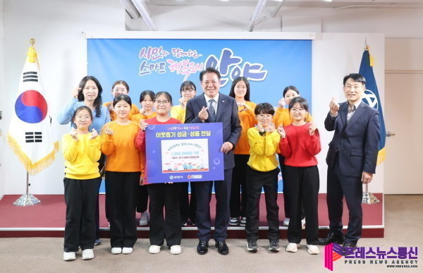 ▲박달초 합창단 꿈꾸는 하모니 유퀴즈 상금 기부 기념 사진(2024년 11월 12일 시청3층 접견실)사진=안양시 |