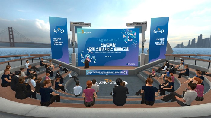 [전남=프레스뉴스] 강래성 기자= 전남교육청이 ‘4단계 스쿨넷서비스 구축’을 완료하고 22일(화) 메타버스(확장가상세계)를 이용해 보고회를 개최했다.