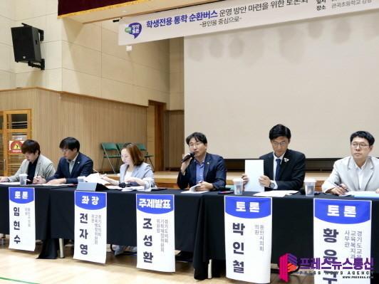 이어 전자영 경기도의회 의원이 좌장을 맡아 진행된 지정토론에서는 용인시의회 소속 이상욱, 임현수, 박인철 의원과 道교육청 관계자 및 학부모 등이 용인시를 중심으로 학생전용 통학 순환버스 운영 방안 마련에 대한 다양한 의견을 나누었다.