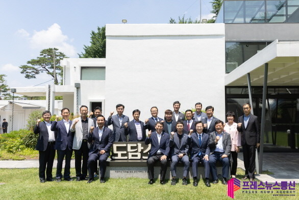 | ▲ 13일 오후 도담소에서 열린 경기도의회 도시환경위원회 오찬 간담회에서 김동연 경기도지사, 유영일 도시환경위원회 위원장 등관계자들이 기념촬영을 하고 있다.(사진=경기도) |