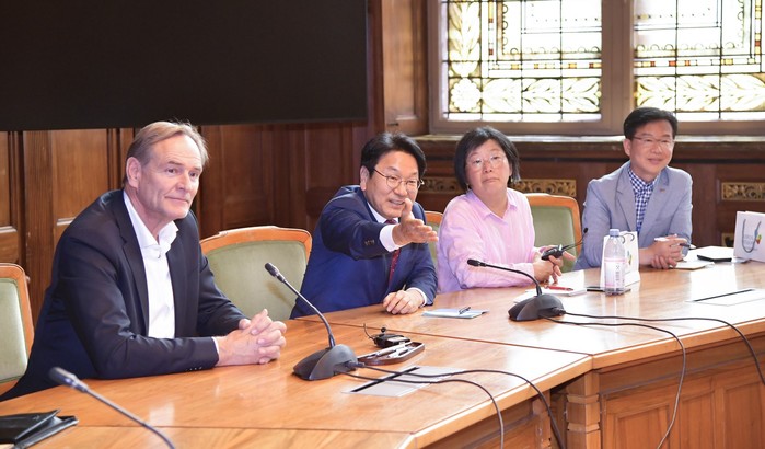 강기정 광주광역시장은 26일(현지시간) 독일 라이프치히시청에서 부르크하르트 융 라이프치히시장을 면담했다.