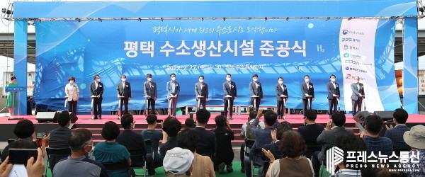 이날 행사에는 박일준 산업통상자원부 2차관, 정장선 평택시장, 문재도 H2KOREA(수소융합얼라이언스. 수소 보급활성화를 위한 민관협의체) 회장, 유승경 경기도경제과학진흥원장, 조용돈 한국가스기술공사 사장, 김재수 평택도시공사 사장, 박형덕 한국서부발전 사장, 조혜영 한국산업단지공단 부이사장 등 관련기관 관계자들이 참석했다. 김 지사는 준공식에 이어 관련기관 관계자들과 생산시설을 견학했다.