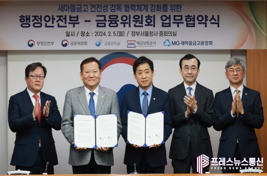 행정안전부와 금융위원회는 5일 정부서울청사에서 ‘새마을금고 건전성 감독 협력체계 강화를 위한 업무협약’을 체결했다.