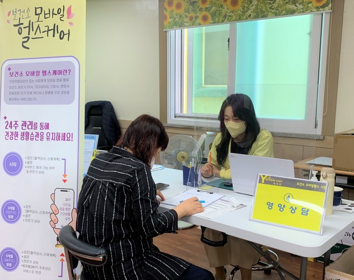 모바일 헬스케어는 건강 위험 요인을 지닌 주민에게 모바일 앱을 이용한 건강관리 서비스를 지원하는 사업이다.