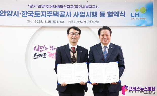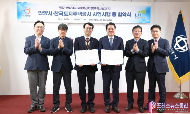 [프레스뉴스] 장현준 기자= 안양시는 25일 한국토지주택공사(LH・이하 공사) 경기남부지역본부와 안양3동 양지마을 일원의 주거재생혁신지구(국가시범지구) 사업시행을 위한 업무협약을 체결했다.