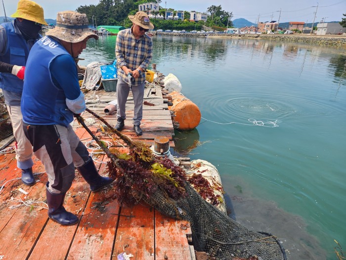 | ▲해양쓰레기 수거(사진=통영해경) |