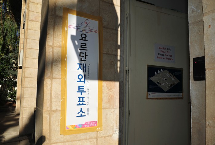 [프레스뉴스] 채정병 특파원=23일(현지시간) 제20대 대통령선거 요르단 재외국민투표가 28일까지 6일간(오전 8시~오후 5시) 주 요르단 대한민국 대사관에 마련된 재외투표소에서 진행되고 있다. 이번 선거에는 218명의 우리국민이 투표신청을 마쳤고, 지난 19대 대선에는 305명이 참여해 92.1%의 투표율을 기록 했다.