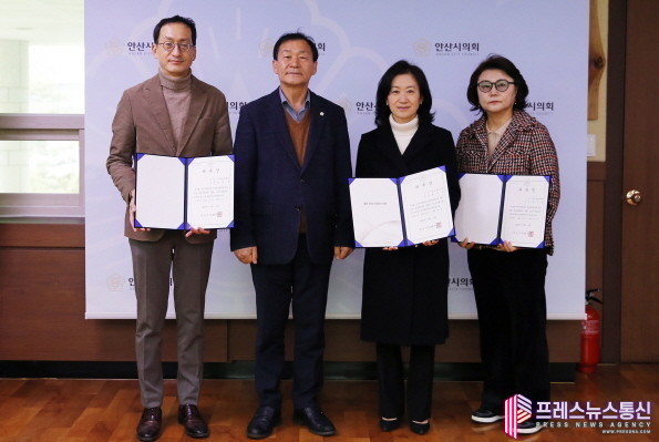[프레스뉴스] 류현주 기자= 안산시의회(의장 박태순)가 13일 의장실에서 공무국외출장 심사위원 위촉식을 열고 민간 인사들을 공무국외출장 심사위원으로 위촉했다.