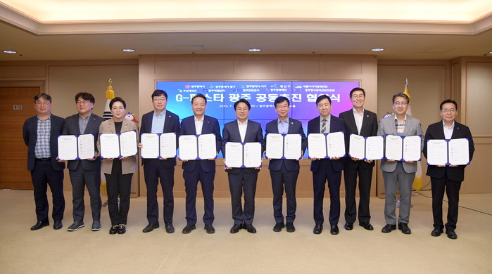 광주광역시(시장 강기정)는 10일 시청 비즈니스룸에서 국립아시아문화전당, 조선대학교, 동구·서구·광산구 등 자치구, (재)광주비엔날레, 광주관광공사, 광주문화재단, 광주정보문화산업진흥원 등 9개 기관과 ‘G-페스타 광주’ 공동추진을 위한 협약을 체결했다.