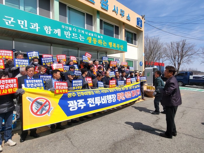 이날 일로읍 이장협의회는 광주 군 공항 이전 반대의 목소리를 내며 “군 공항이 이전되면 전투기 소음에 시달리고 혹시나 모를 전쟁 때 첫 공격 표적이 될 것”이라며, “무안군민의 생존권이 달린 문제”라고 결사반대에 목소리를 내었다.