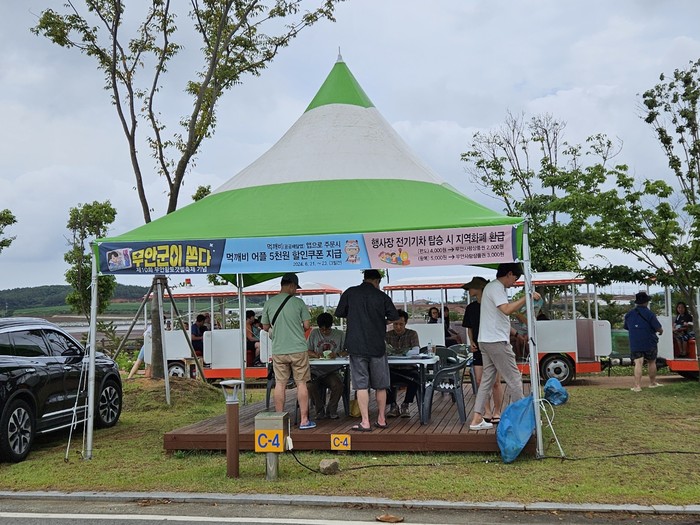 | ▲무안연꽃축제 기간 운영된 무안사랑상품권 환급 부스/무안군 제공 |