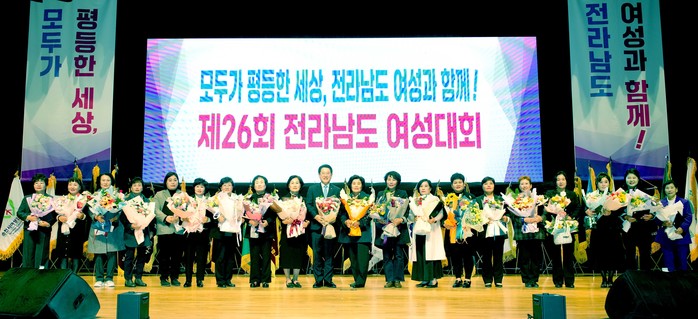 [전남=프레스뉴스] 강래성 기자= 전라남도는 15일 도청 김대중강당에서 김영록 도지사, 서동욱 전남도의회의장, 도의원 등 1천여 명이 참석한 가운데 ‘제26회 전라남도 여성대회’가 열려 여성의 무궁한 잠재력 개발에 앞장설 것을 다짐했다고 밝혔다.