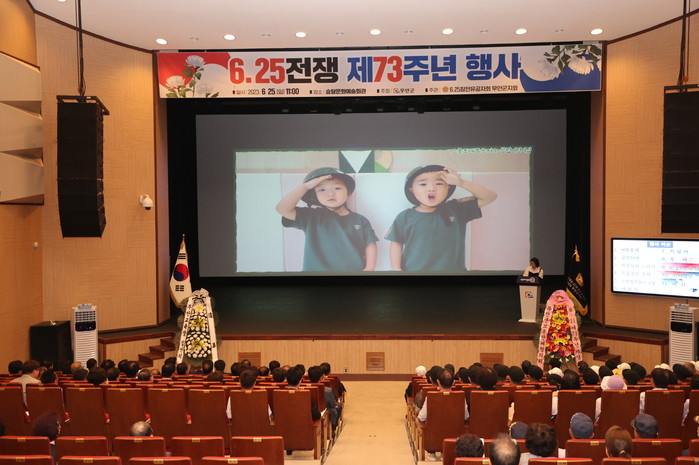 [전남=프레스뉴스] 강래성 기자= 전남 무안군(군수 김산)은 6.25전쟁의 역사적 교훈을 되새기고 희망과 헌신으로 나라를 지키신 참전용사들의 명예를 기리기 위해 지난 25일 무안승달문화예술회관에서 6.25참전유공자회 무안군지회(지회장 김선열) 주관으로 ‘6.25전쟁 73주년 기념식’을 개최했다.