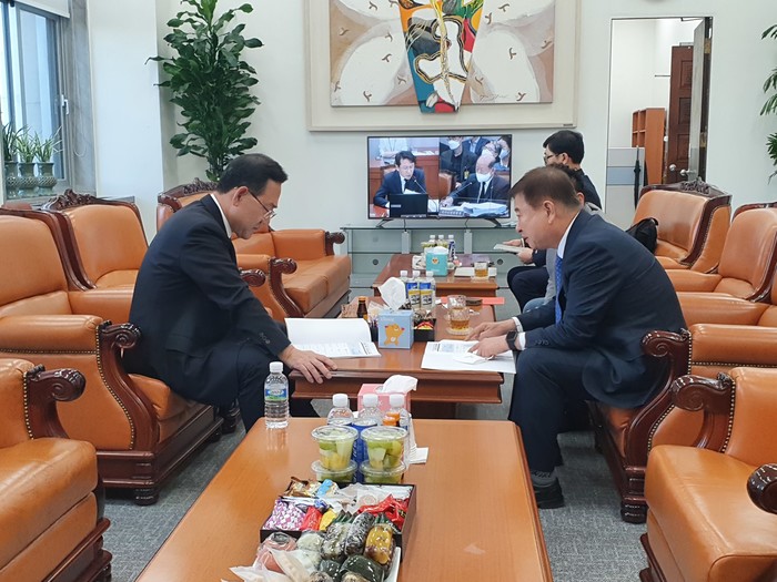 | ▲영광군, 국고확보위해 국회 방문(주호영 원내대표 면담)/영광군 제공 |