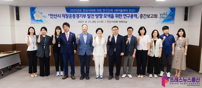 [프레스뉴스] 류현주 기자= 안산시의회 의원연구단체 ‘페어플레이 안산’(대표의원 박은경)은 지난 21일 의회 3층 대회의실에서 「안산시 직장운동경기부 발전 방향 모색」 연구용역 중간보고회를 개최했다.