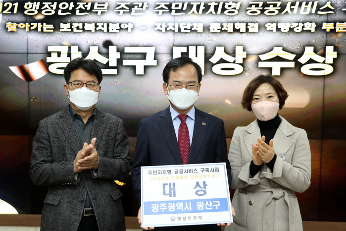 [광주=프레스뉴스] 강래성 기자= 광주 광산구(구청장)는 행정안전부의 2021년 주민자치형 공공서비스 구축사업 찾아가는 보건복지분야 우수사례 경진대회에서 대상에 선정돼 행정안전부 장관 기관 표창을 받았다고 밝혔다.