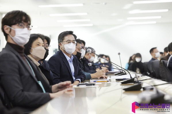 | ▲ 20일 오전 경기도청 4층 다목적회의실에서 열린 기회경기 혁신포럼 ‘경바시(경기도를 바꾸는 시간)’에서 김동연 경기도지사가 발표를 경청하고 있다.(사진=경기도) |