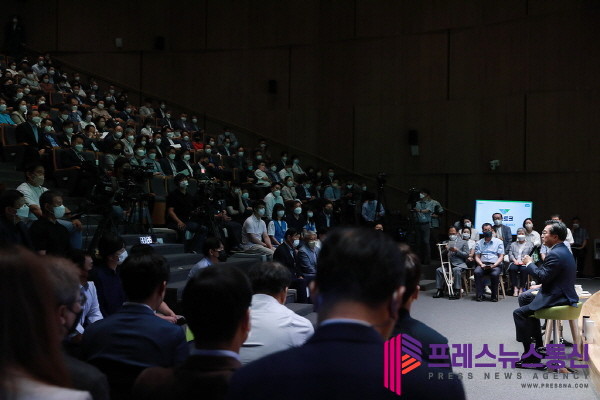 이어진 도민들과의 대화는 청년과 꿈나무기자(어린이), 새싹기업(스타트업) 대표, 중소기업 대표, 농민, 장애인 등 다양한 계층과 연령, 직업을 가진 도민들이 김 지사에게 질문과 바람을 전하고 답하는 방식으로 진행됐다.
