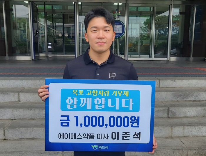 [전남=프레스뉴스] 이광남 기자= 전남 목포시는 에이에스약품 이준석 이사가 고향사랑기부금 100만원을 기탁했다고 21일 밝혔다.