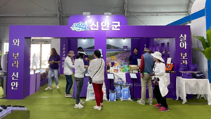 이번 국제농업박람회 농식품홍보관 내 신안군 홍보·판매 부스는 신안을 상징하는 보라색(purple·퍼플)을 주제로 꾸미고 퍼플교 포토존을 운영하여 관람객들에게 많은 호평을 받고 있으며 야외 남도 정원에는 미니 퍼플교 정원을 꾸며 관람객들의 시선과 관심을 한 몸에 받고 있다.
