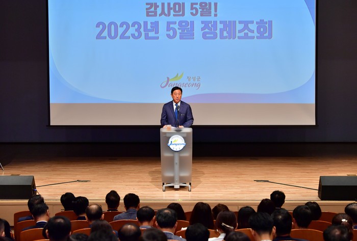 8일 장성문화예술회관에서 열린 정례조회에서 김 군수는 “홍길동무 꽃길축제는 형형색색 봄꽃의 향연이 펼쳐지는 우리 군 대표 봄 축제”라며 “오랫동안 기다려 온 관광객과 군민들을 위해 철저한 준비가 필요하다”고 말했다.