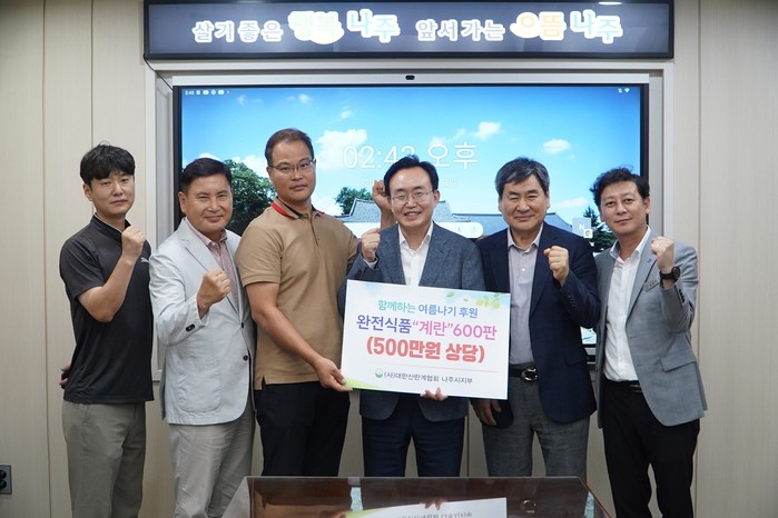 [전남=프레스뉴스] 강래성 기자= 전라남도 나주시(시장 윤병태)는 지난 3일 (사)대한산란계협회 나주시지부(지부장 최문기)에서 500만원 상당의 계란 600판을 기탁했다고 4일 밝혔다.