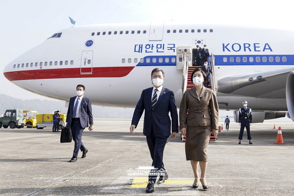 문 대통령은 오늘 오전 서울공항에 전용기 편으로 도착했다.