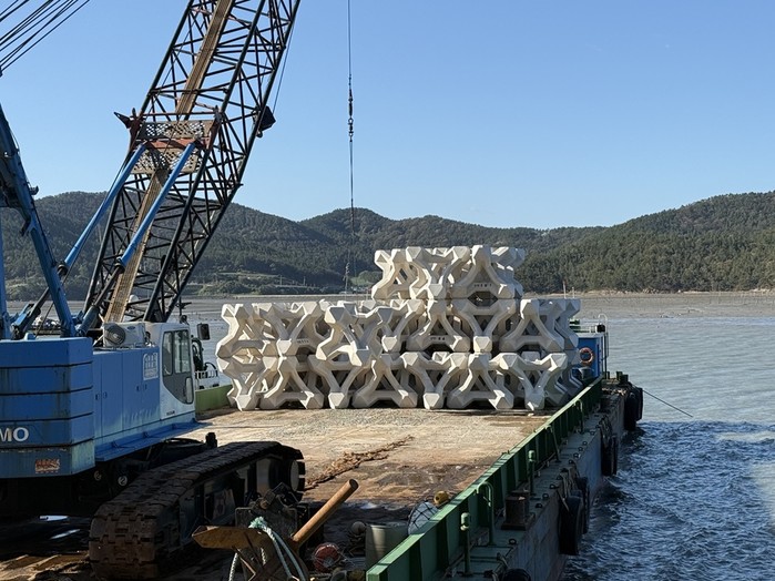 [전남=프레스뉴스] 강래성 기자= 신안군은 다이아몬드 해역 내 수산자원 산란·서식장 조성 일환으로 지난 9월 인공어초 68개 설치에 이어, 11. 12일(수) 올해 마지막 인공어초 123개를 추가로 투하했다.