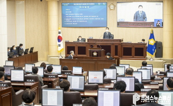 본회의를 주재한 송바우나 의장은 개회사에서 “의회는 25일간의 정례회 기간 동안 조례안 등 각종 안건과 2023년도 예산안 등을 심의하면서 시가 나아갈 정책 방향을 함께 고민할 것”이라며 “시의 재정 현실을 고려하고 예산의 낭비요소를 철저히 가려내 시민이 바라는 예산이 성립될 수 있도록 의회의 본분을 다하겠다”고 밝혔다.