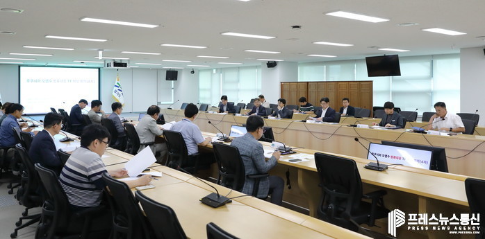 | ▲ 24일 오후 경기도청 다목적회의실에서 오병권 행정1부지사 등 관계자들이 참석한 가운데 후쿠시마 오염수 방류대응 TF 비상 회의가 열리고 있다.(사진=경기도) |
