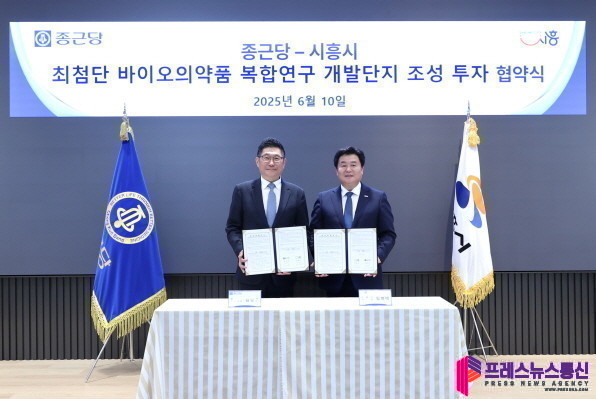시흥시는 10일, 서울 종근당 본사에서 종근당과 함께 최첨단 바이오의약품 복합연구개발단지 조성을 위한 투자양해각서를 체결했다. 지난 2월 경기경제자유구역 배곧지구 연구3-1용지의 우선협상대상자로 종근당을 선정하고, 약 4개월간의 협상을 거쳐 이뤄낸 결과다.