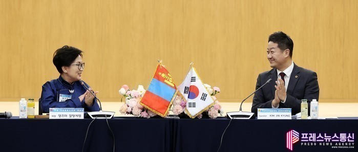 [프레스뉴스] 류현주 기자= 김진경 경기도의회 의장은 4일 도의회 대회의실에서 의회의 대표 친선연맹 의회인 몽골 다르항올도의회 대표단을 접견했다.
