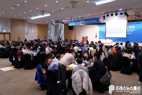 | ▲ 지난 12일 경기도경제과학진흥원 광교홀에서 염태영 경제부지사와 도민참여단, 공론화추진단 등 관계자들이 참석한 가운데 2022 경기도 공론화 2차 숙의토론회가 열리고 있다.(사진=경기도) |