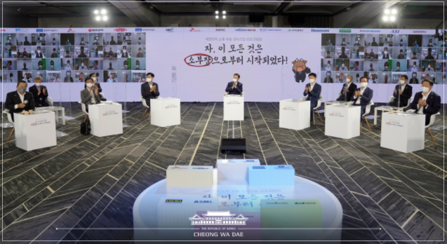 이날 문 대통령은 모두말씀을 통해 “위기를 기회로 바꾼 주역들과 함께 소부장 자립의 성과를 나눌 수 있게 되어 매우 기쁘다”며 “우리는 상생과 협력으로 위기극복의 성공 공식을 찾았다”고 말했다. 이어 소부장 기업 대표들의 경험담을 공유한 뒤, 소부장 산업의 미래 비전에 대해 이야기하는 방식으로 간담회가 진행되었다.