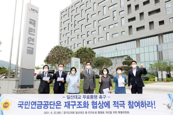 이날 특별위원회 위원들은 “첫째, 국민연금공단에서 책임있는 자세로 경기도가 요구하는 일산대교 무료통행을 전제한 재구조화 협상 참여, 둘째, 일산대교 수익구조의 투명한 공개, 셋째, 향후 공공성을 감안한 적정이윤 내에서의 투자 시행” 등을 강력히 요구하며 목소리를 높였다.
