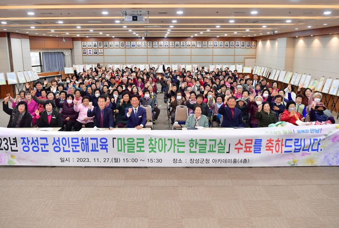 [전남=프레스뉴스] 차윤기 기자= 전남 장성군이 27일 ‘마을로 찾아가는 한글교실’ 수료식 및 작품전시회를 열었다.