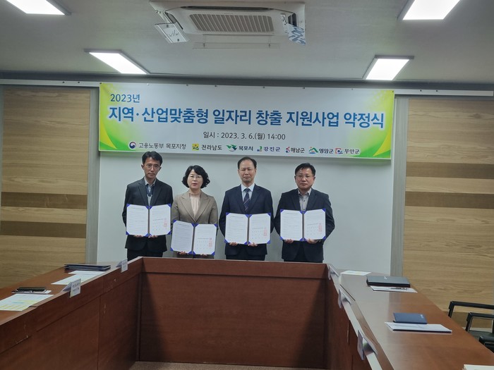 [전남=프레스뉴스] 강래성 기자= 영암군(군수 우승희)은 지난달 전라남도, 목포시와 함께 고용노동부 ‘2023년 지역고용위기 대응 지원사업-조선업도약센터’ 공모에 선정되어, 지난 3월 6일 광주지방고용노동청 목포지청에서 열린 약정서 체결식에 참석했다고 밝혔다.