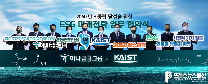 [프레스뉴스] 김대일 기자= 하나금융그룹(회장 김정태)은 세계적인 연구대학 KAIST와 함께 2050 탄소중립을 위한 ▲기후변화 문제 해결 ▲저탄소 에너지경제로의 전환 ▲신재생에너지 확대 등을 목표로 하는「ESG 미래전략」업무협약을 체결했다고 밝혔다.