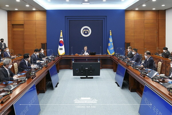 문 대통령은 이날 청와대에서 국무회의를 주재하며 “세계로부터 인정받는 나라가 된 것은 온 국민이 단합하여 노력한 결과”라며 “K-방역은 국제적 표준이 되었고 제조업 강국의 위상은 튼튼히 다져 나가고 있고 한국의 문화예술은 세계인의 마음을 사로잡고 있어서 주요 선진국 정상들도 우리나라가 이룬 성과에 대해 한결같이 높이 평가했다”고 말했다.