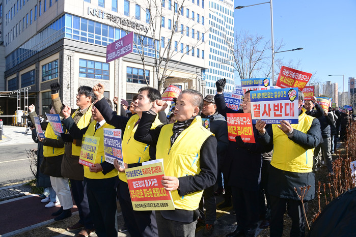 이날 집회를 주도한 이영춘 대표는 국기연의 부서 이전 계획에 대해 전면 백지화를 요구했다.