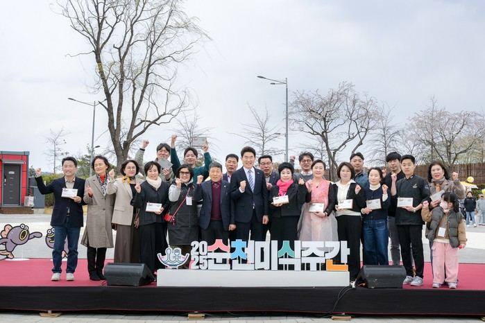 | ▲맛집인증식 시상후 수상업소 단체사진촬영/순천시 제공 |