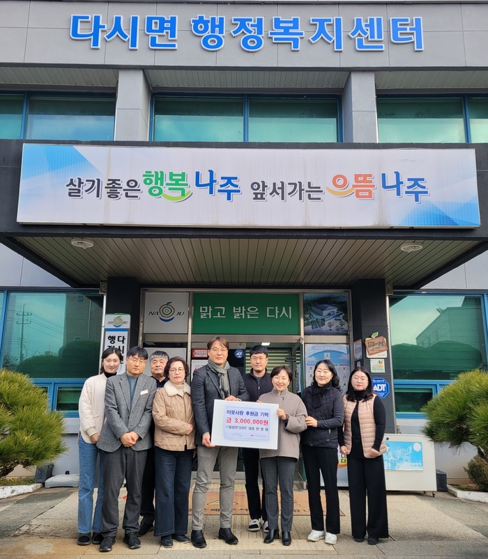[전남=프레스뉴스] 강래성 기자= 전라남도 나주시 다시면(면장 박은희)은 최근 관내 기업인 ㈜동양콘크리트(대표 한병채)와 대신기업(대표 최영길)에서 각각 300만원과 200만원의 이웃돕기 성금을 기탁했다고 31일 밝혔다.