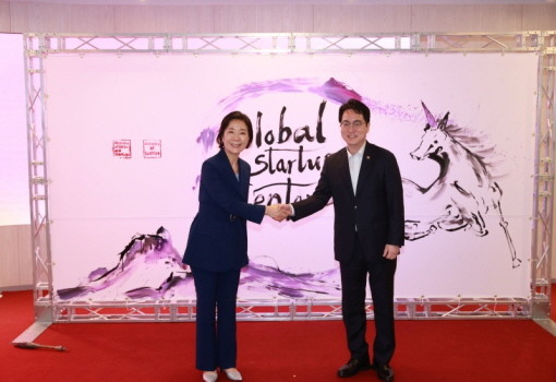 | ▲오영주 중소벤처기업부 장관과 심우정 법무부 차관이 31일 서울 강남구 팁스타운에서 열린 ‘글로벌 스타트업센터 개소식’에서 악수를 하고 있다.(사진= 뉴스1) |