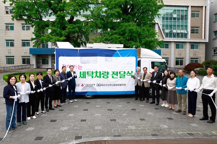 이날 이동세탁차량 전달식에는 구복규 화순군수, 김동극 전남사회복지 공동모금회 사무처장, 양동만 화순군지역사회보장협의체 민간위원장 등 협의체 위원이 함께했다.