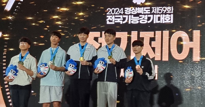| ▲전기제어직종_여수공업고(왼쪽에서_세번째가_김범준(금)__네번째가_추명규(금)/전남교육청 제공 |