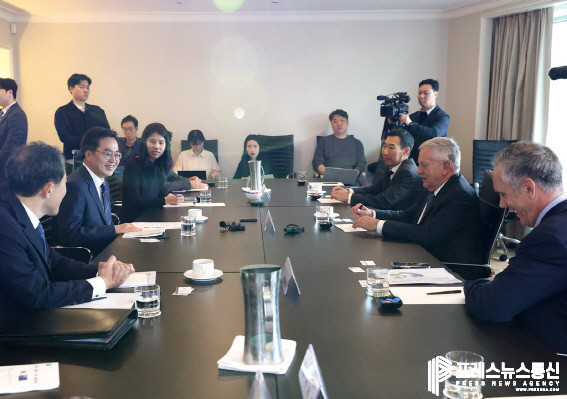 김동연 지사는 28일 호주 시드니의 한 호텔에서 한·호 경제협력위원회(AKBC·Australia-Korea Business Council) 빌 패터슨(Bill Paterson) 국방분과위원장, 제임스 최(James Choi) 금융분과 위원, 데이브 녹스(Dave Noakes) 금융분과 위원을 만났다. 특히 빌 패터슨 위원장과 제임스 최 위원은 주한 호주대사를 과거 역임한 데 이어 한국·호주 간 대표적인 민간 경제협의체 ‘한·호 경제협력위원회’에 소속된 한-호 교류의 핵심 인물이다.