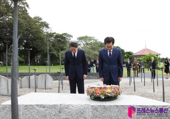 한편 김동연 지사는 한·호 경제협력위원회 면담에 앞서 이날 오전 시드니시가 소재한 뉴사우스웨일스주의 무어파크(Moore Park) 한국전쟁참전비를 찾아 헌화하며 호주 방문 공식 일정을 시작했다. 헌화에는 고남희 뉴사우스웨일스주 한국전 참전비 관리위원회 공동회장 등이 함께 했다.