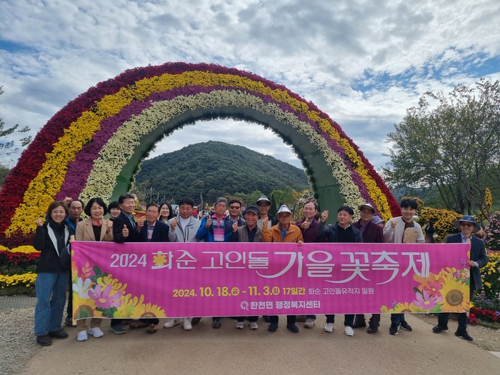 이날 탐방에는 기관‧사회단체장, 번영회, 이장단 등 한천면민 30여 명이 함께한 가운데, 가을꽃의 향연이 펼쳐지는 고인돌 축제장, 화순군의 새로운 랜드마크로 자리잡은 개미산 전망대, 야간 경관이 아름다운 도심 속 힐링공간 남산공원까지 최신 트렌드를 반영한 화순군의 주요 관광지를 방문하여 가을의 정취를 만끽했다.